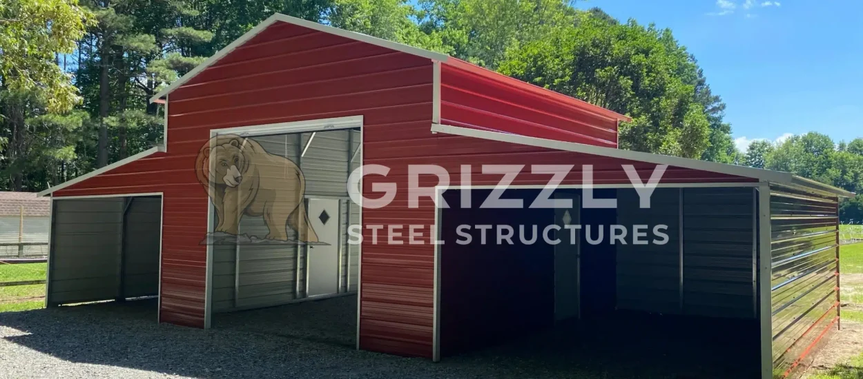 Grizzly’s metal barns are low maintenance and versatile. Grizzly Steel Structures provides one of the best metal barns in various size, color and features like windows, walk-in doors, roof style to match your exact requirement.